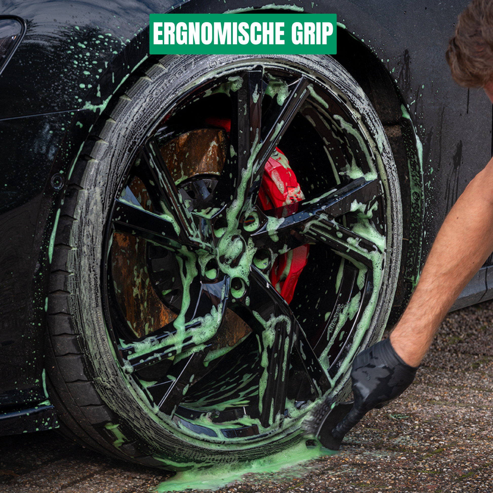 Een bandenborstel is ideaal voor het grondig reinigen van autobanden. De stevige, maar zachte borstels verwijderen vuil en modder zonder het rubber te beschadigen, waardoor je banden langer meegaan, beter presteren en er clean uitzien.