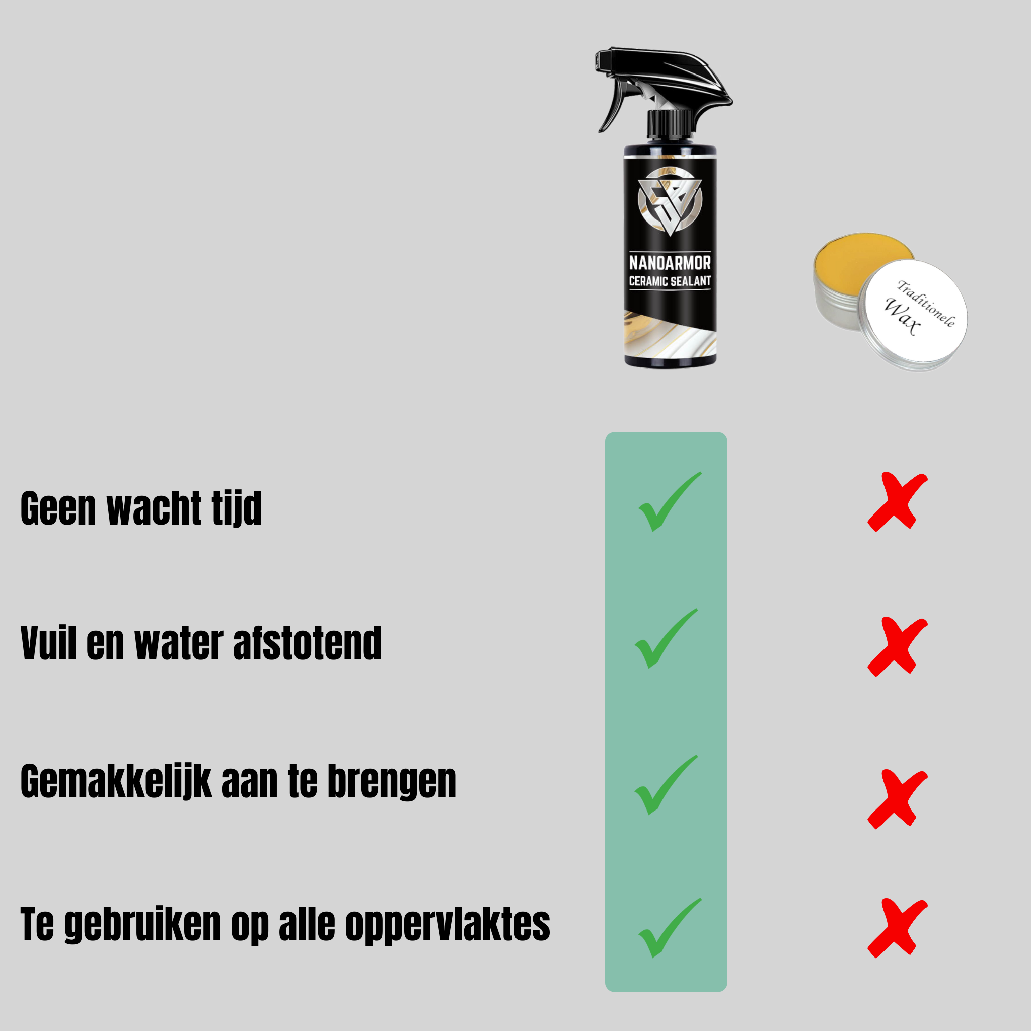 Nanoarmor is een krachtige beschermlaag die speciaal is ontwikkeld om langdurige glans en bescherming te bieden aan elk voertuigoppervlak, van lak en kunststof tot velgen en glas.